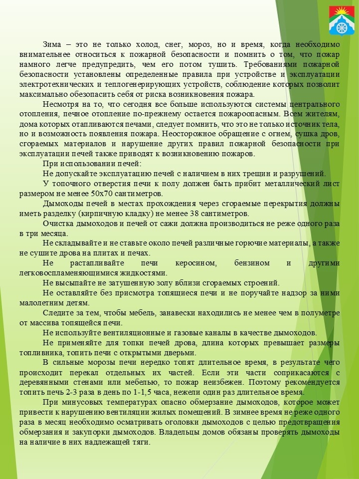 Наступили холода: тщательнее соблюдайте правила пожарной безопасности